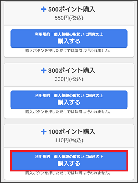 そのまま下へスクロールすれば、様々なポイント追加コースが選択できるようになっているので、お好きなポイントを選択してください。