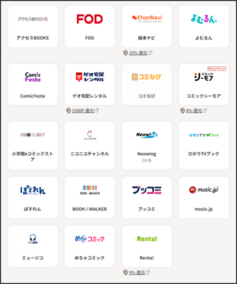 Neowingやゲオ宅配レンタルなど一部関係のないサービスもありますが、めちゃコミックなど電子書籍ストアとして有名なサービスも含まれているので、最終的にはご自身で決めるといいでしょう。