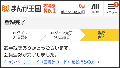 チェックが入っている状態だと、今後まんが王国からお知らせメールが届く場合があるので、もし嫌ならばチェックを外しておくといいでしょう。