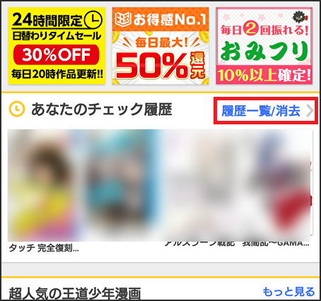 その他、毎日クーポンを獲得する為に利用する程度で、読んだ漫画が表示されることはありません。(クーポンについての詳細は以下のページを確認してください)