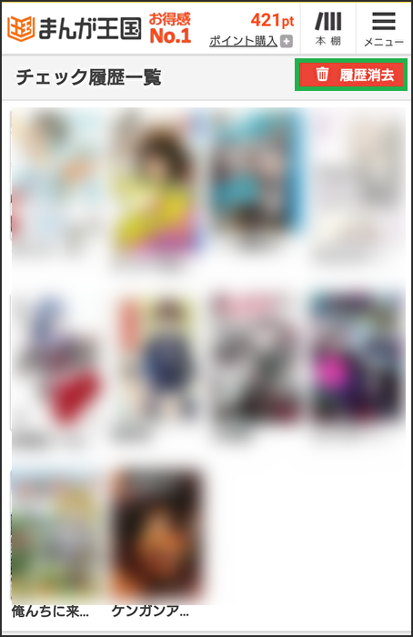 まんが王国ではチェック履歴という機能がありますが、これは単純に閲覧履歴という意味です。