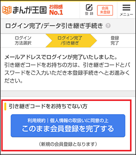 その後「引き継ぎコードをお持ちでない方」の下にある会員登録ボタンをタップします。
