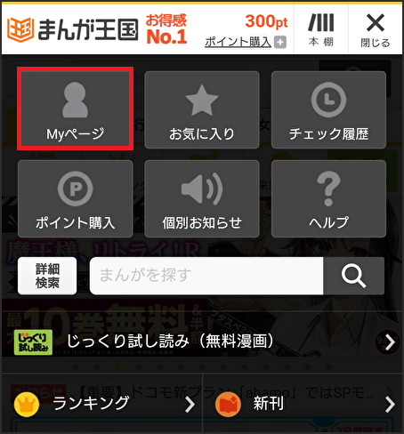 ログイン後、続いて右上の「メニュー」をタップしMyページへ進んでください。